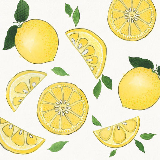 Zesty Lemons White Modern Wood Framed Art Print with Double Matting by Tava Studios
