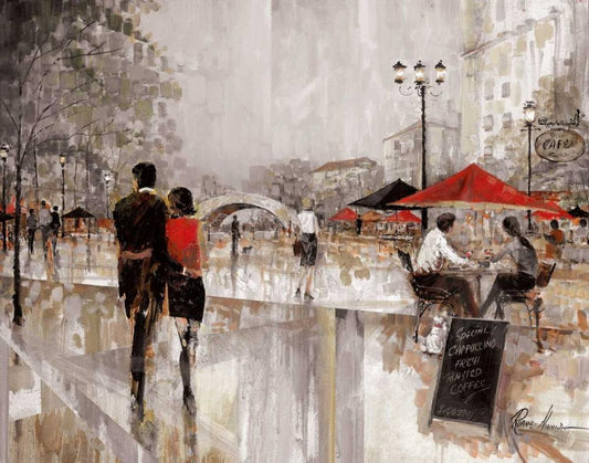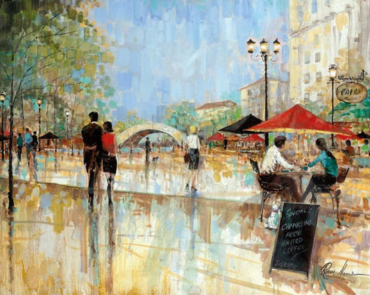 Riverwalk Charm White Modern Wood Framed Art Print with Double Matting by Manning, Ruane