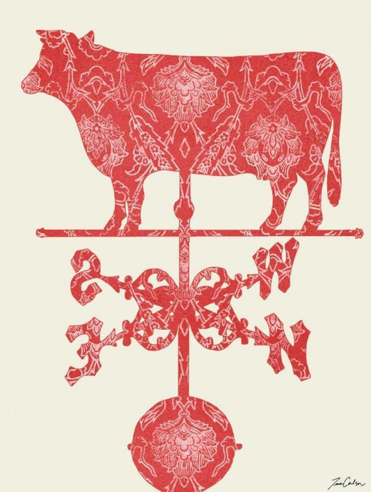 Weather Vane Cow White Modern Wood Framed Art Print with Double Matting by Carlson, Tina
