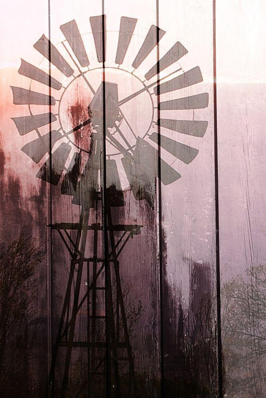 Windmill Sunset White Modern Wood Framed Art Print with Double Matting by Kimberly, Allen
