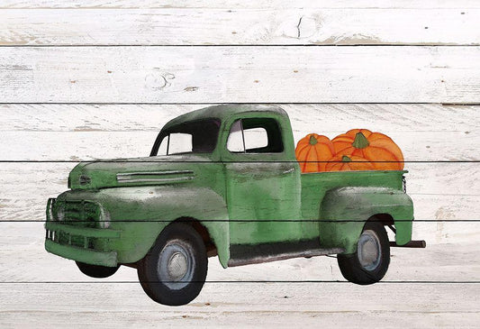 Pumpkin Truck White Modern Wood Framed Art Print with Double Matting by Kimberly, Allen
