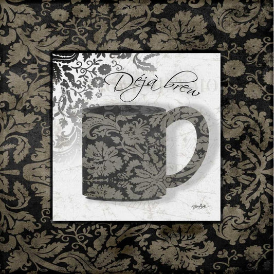 Grey Coffee Damask 1 White Modern Wood Framed Art Print with Double Matting by Stimson, Diane