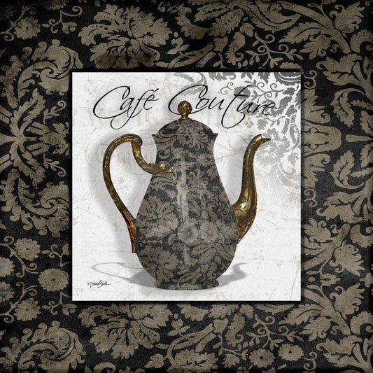 Coffee Damask 2 White Modern Wood Framed Art Print with Double Matting by Stimson, Diane