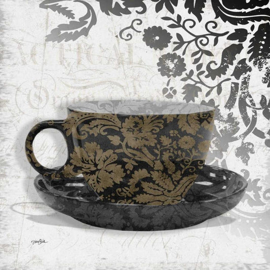 Coffee Damask 1 White Modern Wood Framed Art Print with Double Matting by Stimson, Diane