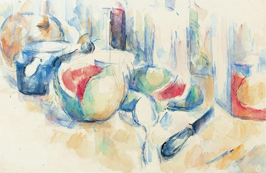 Cezanne - Still Life With Fruit White Modern Wood Framed Art Print with Double Matting by Vintage Apple Collection