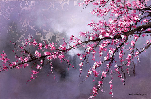 Blossom Season White Modern Wood Framed Art Print with Double Matting by Leung, Thomas