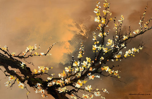 Yellow Plum Blossom 2 White Modern Wood Framed Art Print with Double Matting by Leung, Thomas