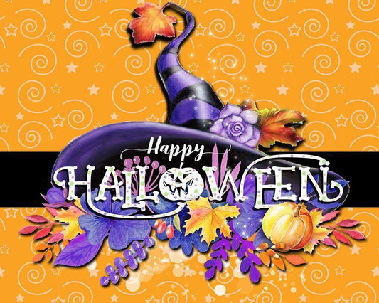 Happy Halloween Sign - Witch Hat White Modern Wood Framed Art Print with Double Matting by Sheena Pike Art