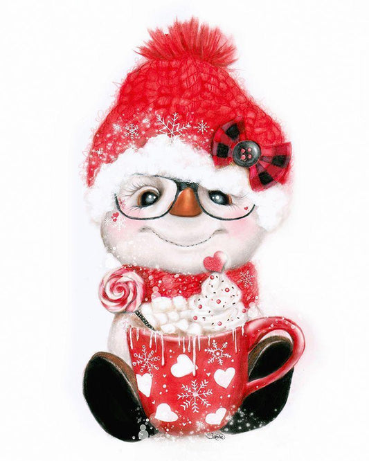 Peppermint Snowman White Modern Wood Framed Art Print with Double Matting by Sheena Pike Art