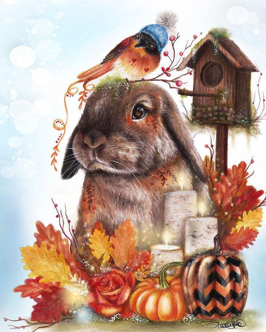 Autumn Greetings Bunny - with Background White Modern Wood Framed Art Print with Double Matting by Sheena Pike Art