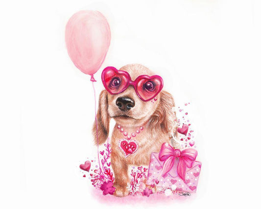 Pawsitively Love You - Daschund White Modern Wood Framed Art Print with Double Matting by Sheena Pike Art
