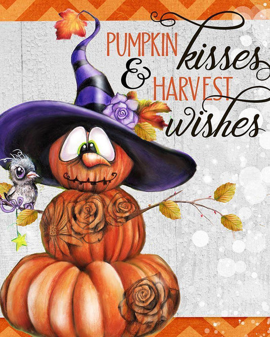 Pumpkin Kisses And Harvest Wishes Jack O Man 2 - Color White Modern Wood Framed Art Print with Double Matting by Sheena Pike Art