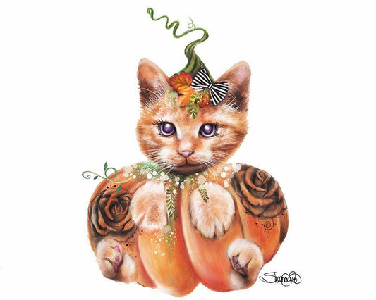 Jack O Kitty White Modern Wood Framed Art Print with Double Matting by Sheena Pike Art
