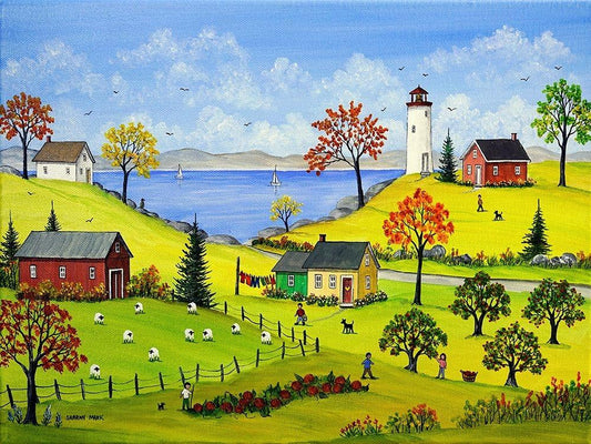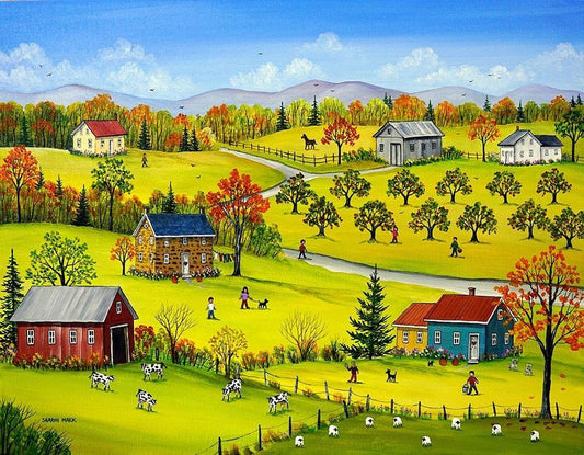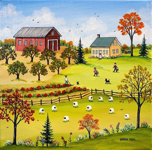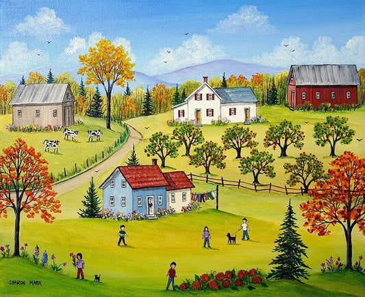 Farm Kids in the Fall White Modern Wood Framed Art Print with Double Matting by Mark, Sharon