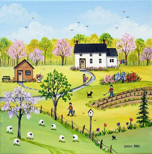 Tending the Garden White Modern Wood Framed Art Print with Double Matting by Mark, Sharon