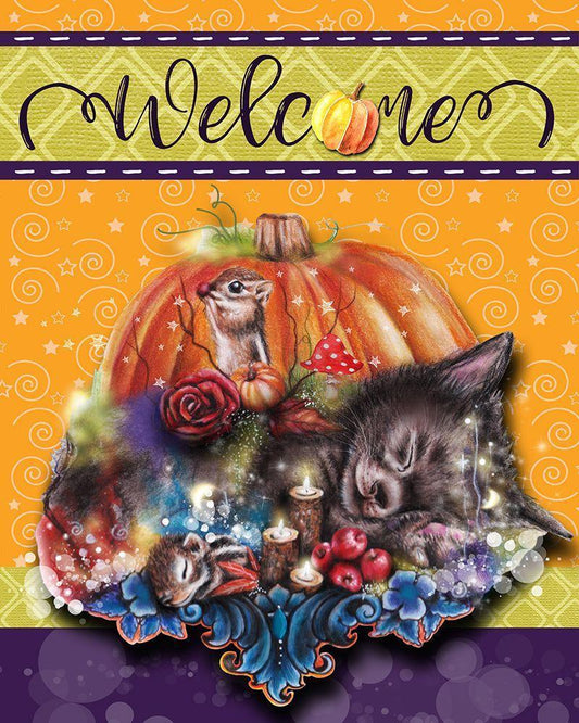 Dreaming of Autumn - Welcome Design White Modern Wood Framed Art Print with Double Matting by Sheena Pike Art