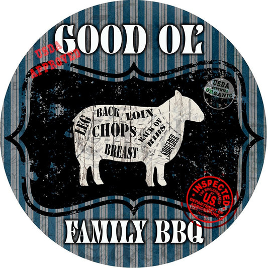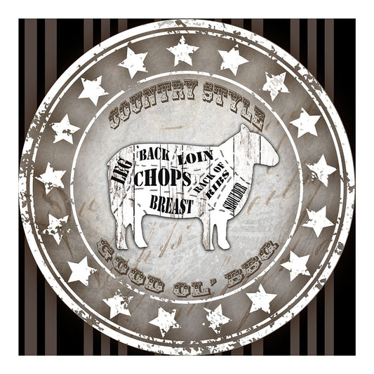 Good Ol BBQ Square Sheep White Modern Wood Framed Art Print with Double Matting by LightBoxJournal