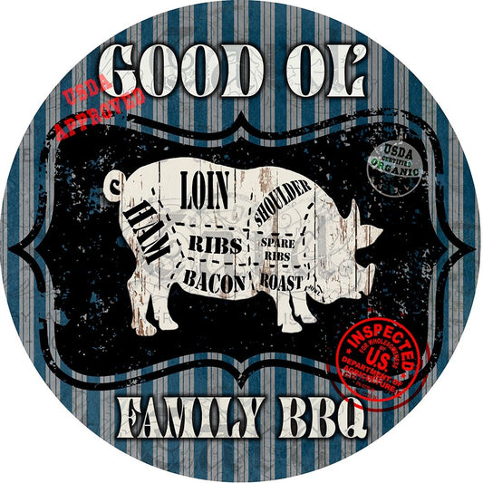 Good Ol Family BBQ Round Pig White Modern Wood Framed Art Print with Double Matting by LightBoxJournal