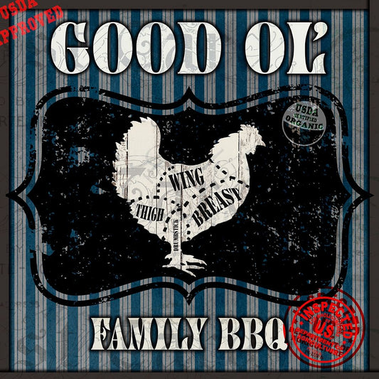 Good Ol Family BBQ Square Chicken White Modern Wood Framed Art Print with Double Matting by LightBoxJournal