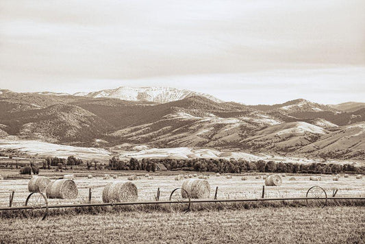 Montana Hayfield White Modern Wood Framed Art Print with Double Matting by Schell, Jennie Marie