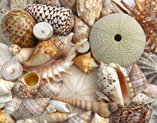 Seashells 1 White Modern Wood Framed Art Print with Double Matting by Schell, Jennie Marie