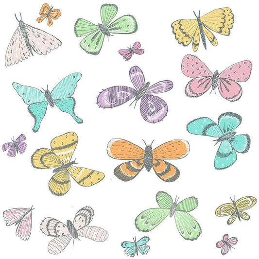 Sketch Book Butterfly White Modern Wood Framed Art Print with Double Matting by HUE and MI and Sangita