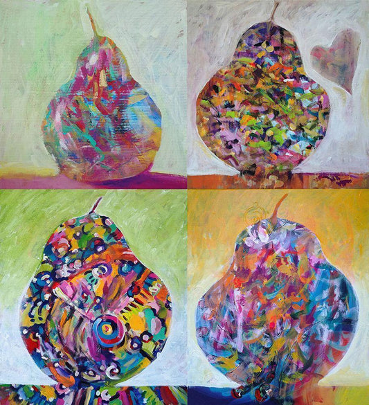 4 Pears 119 White Modern Wood Framed Art Print with Double Matting by Green, Howie