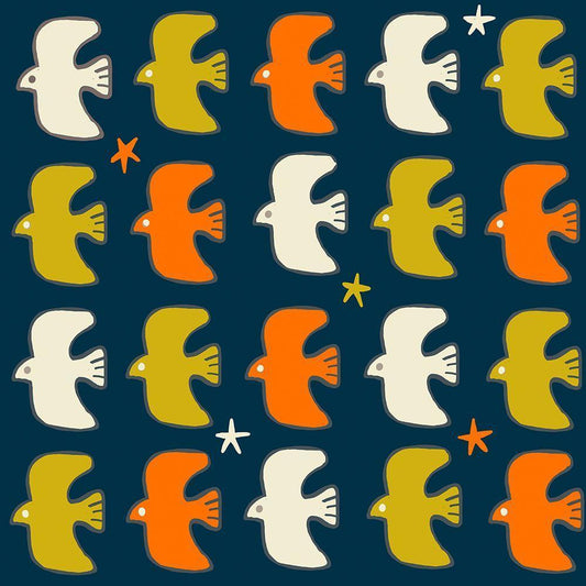 Flying Cranes White Modern Wood Framed Art Print with Double Matting by Green, Howie