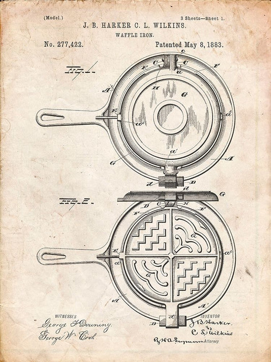 PP209-Vintage Parchment Waffle Iron Patent Poster White Modern Wood Framed Art Print with Double Matting by Borders, Cole