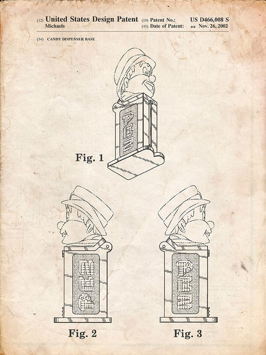 PP441-Vintage Parchment Pez Dispenser Patent Poster White Modern Wood Framed Art Print with Double Matting by Borders, Cole