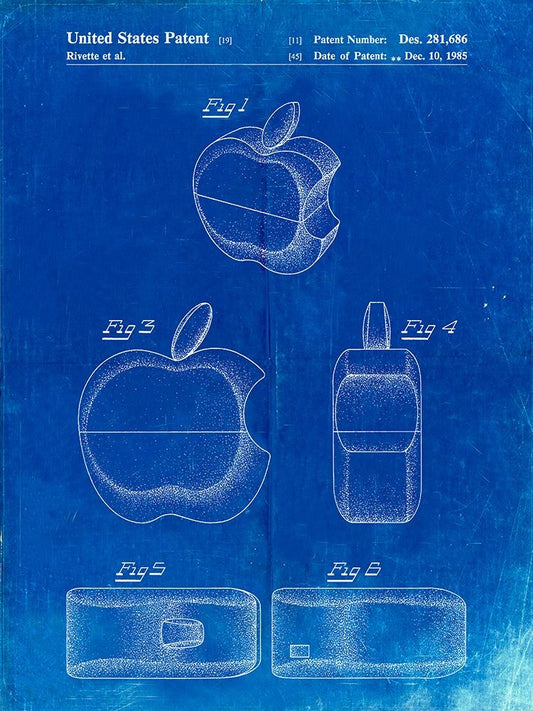 PP260-Faded Blueprint Apple Logo Flip Phone Patent Poster White Modern Wood Framed Art Print with Double Matting by Borders, Cole