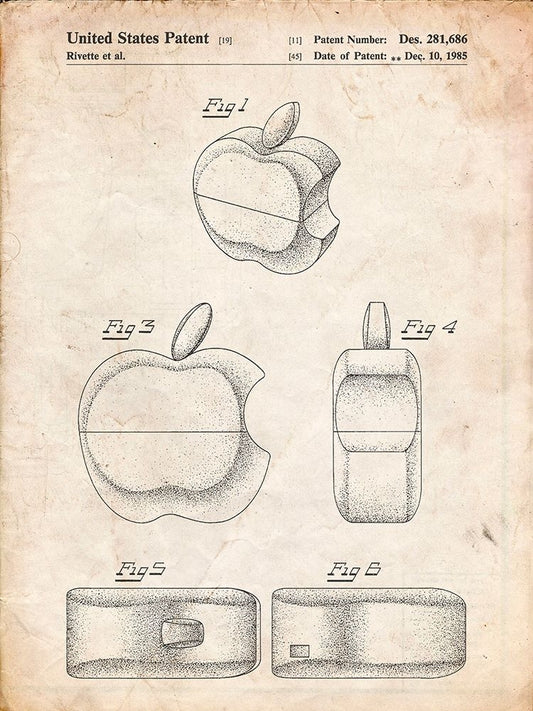 PP260-Vintage Parchment Apple Logo Flip Phone Patent Poster White Modern Wood Framed Art Print with Double Matting by Borders, Cole