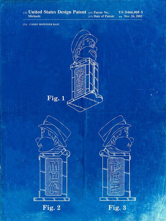 PP441-Faded Blueprint Pez Dispenser Patent Poster White Modern Wood Framed Art Print with Double Matting by Borders, Cole