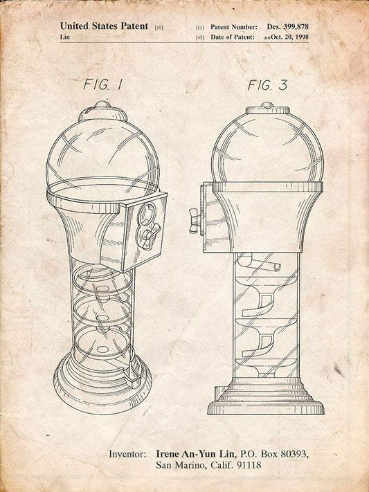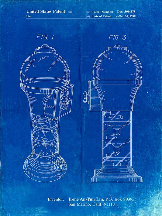 PP864-Faded Blueprint Gumball Machine Poster White Modern Wood Framed Art Print with Double Matting by Borders, Cole