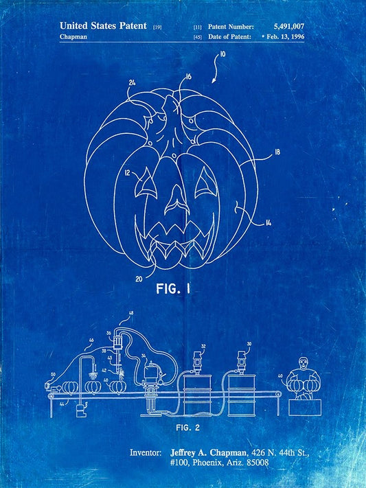 PP895-Faded Blueprint Jack OLantern Patent Poster White Modern Wood Framed Art Print with Double Matting by Borders, Cole