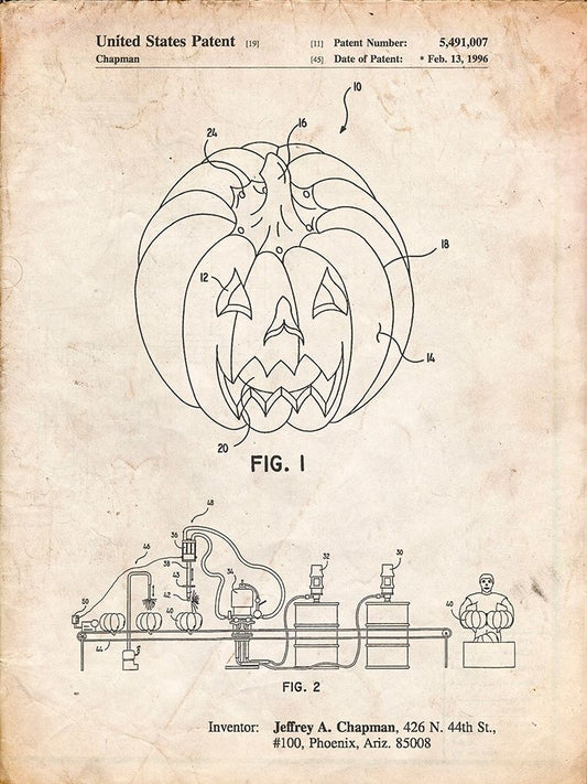 PP895-Vintage Parchment Jack OLantern Patent Poster White Modern Wood Framed Art Print with Double Matting by Borders, Cole