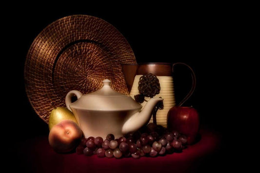 Teapot with Fruit Still Life White Modern Wood Framed Art Print with Double Matting by McNemar, C. Thomas