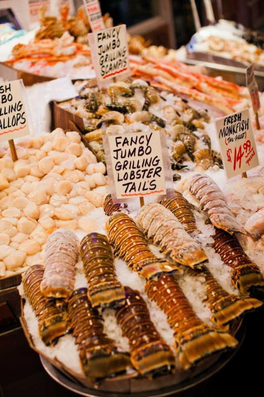 Fresh Seafood I White Modern Wood Framed Art Print with Double Matting by Stefko, Bob