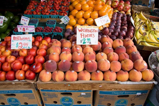 Fruit Stand II White Modern Wood Framed Art Print with Double Matting by Love, Maureen