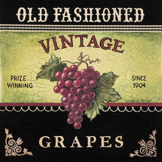 Vintage Grapes White Modern Wood Framed Art Print with Double Matting by Poloson, Kimberly