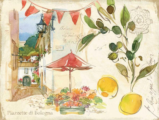 Piazzette Olives White Modern Wood Framed Art Print with Double Matting by Paton, Julie