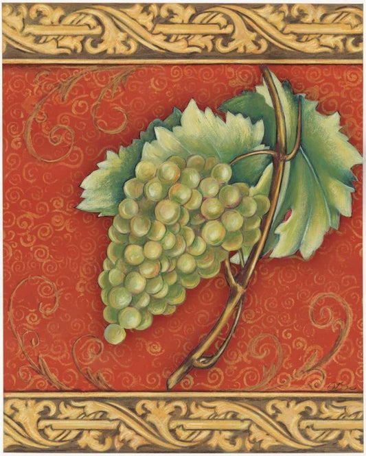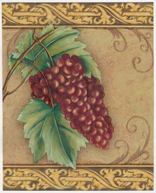 Grape Tapestry I White Modern Wood Framed Art Print with Double Matting by Osborne, Susan