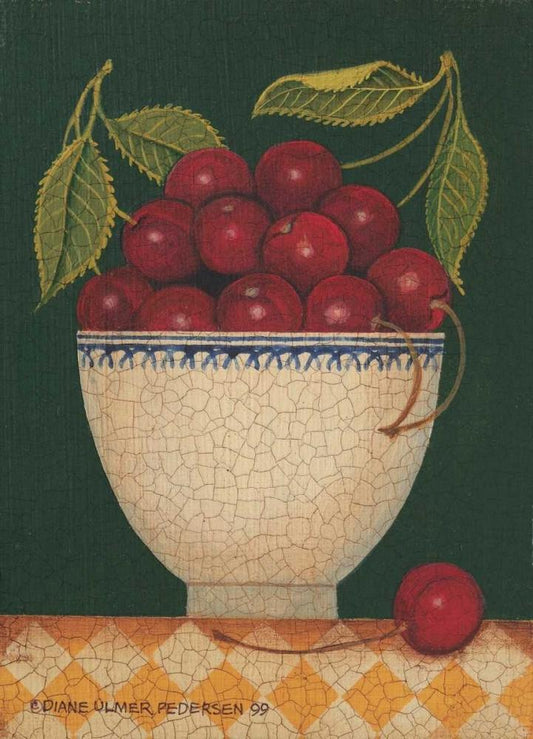 Cup O Cherries White Modern Wood Framed Art Print with Double Matting by Pedersen, Diane