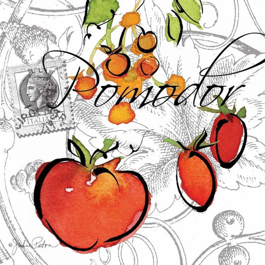 Piazzette Tomatoes White Modern Wood Framed Art Print with Double Matting by Paton, Julie