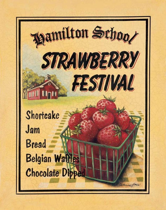 Strawberry Festival White Modern Wood Framed Art Print with Double Matting by Jones, Catherine