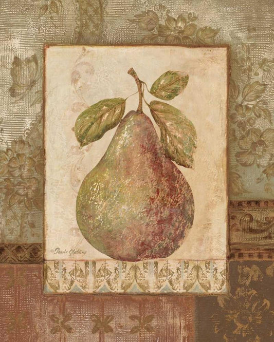 Rustic Pears I White Modern Wood Framed Art Print with Double Matting by Gladding, Pamela