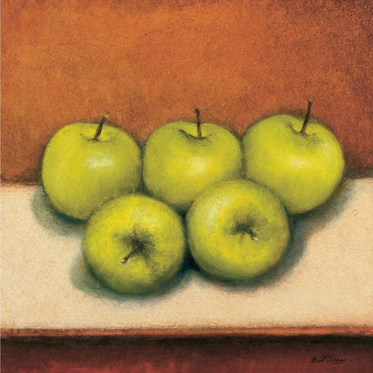 Granny Smith Apples White Modern Wood Framed Art Print with Double Matting by Creevy, Bill
