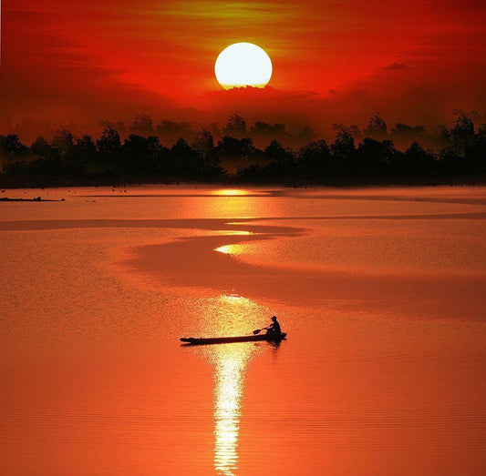 Rowling Alone White Modern Wood Framed Art Print with Double Matting by Intarob, Sarawut