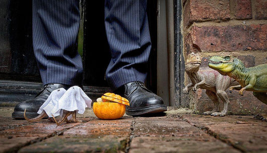 Trick Or Treat - Roary A Sid Took Waif A Stray Out Trick Or Treating As A Distraction Tactic White Modern Wood Framed Art Print with Double Matting by Brooke, Sarah