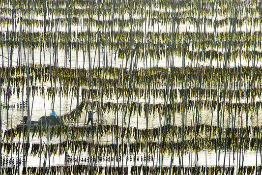 Harvesting Kelp Black Ornate Wood Framed Art Print with Double Matting by Zhou, Xinhua